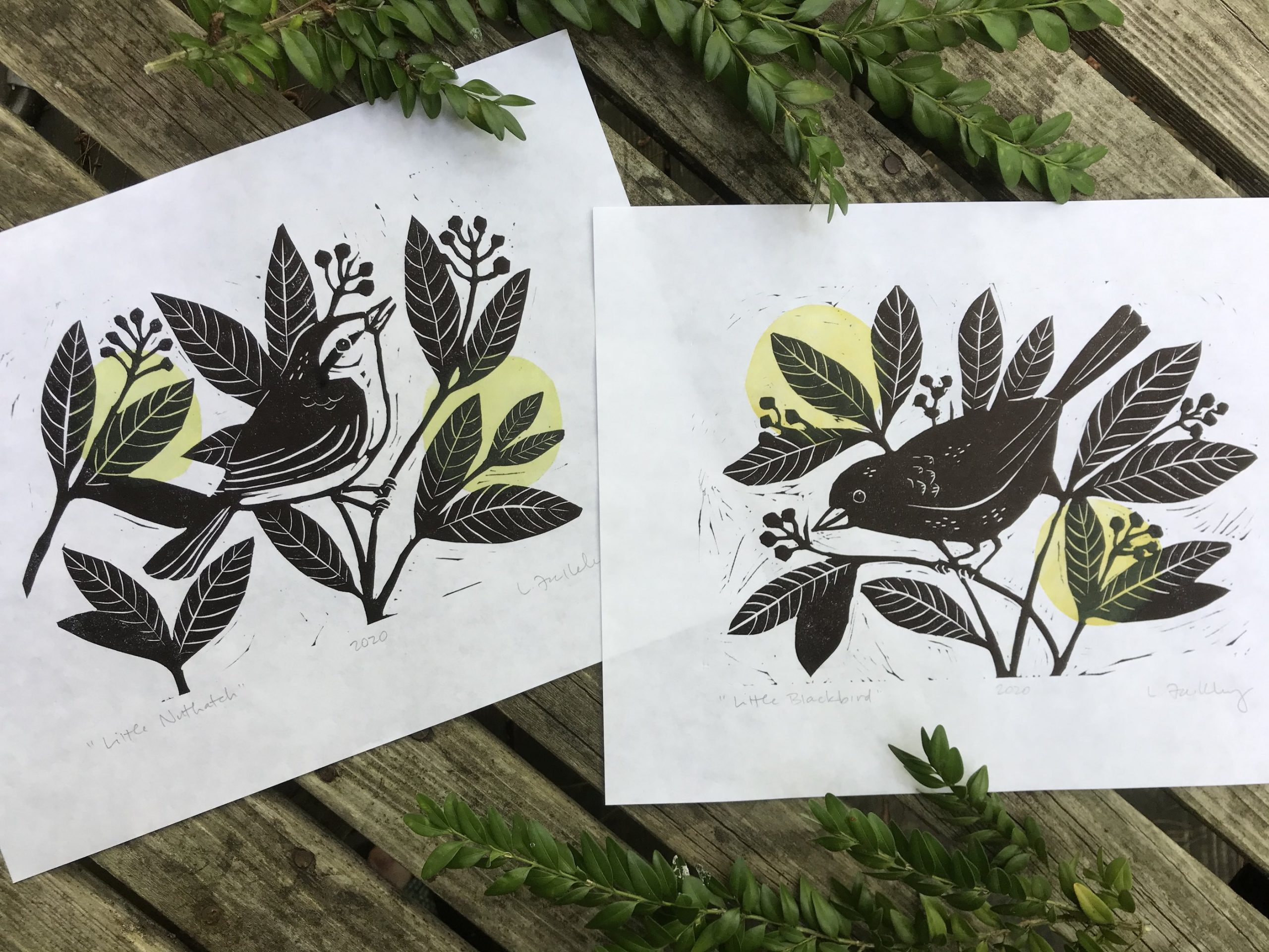 two bird linocuts